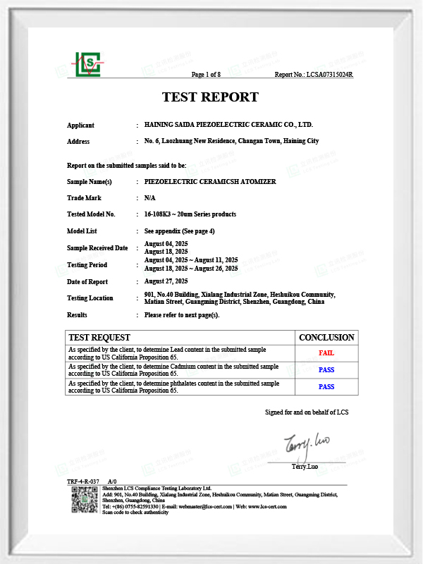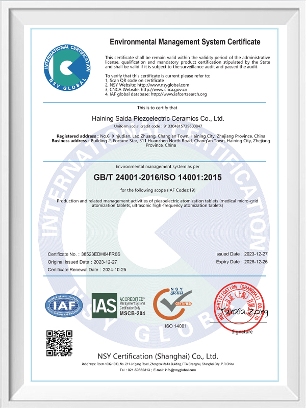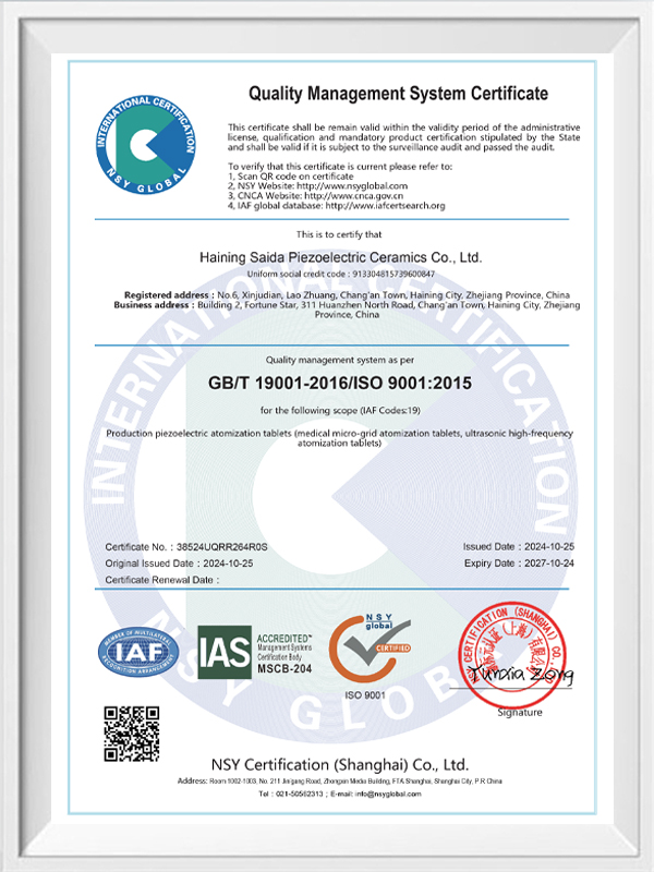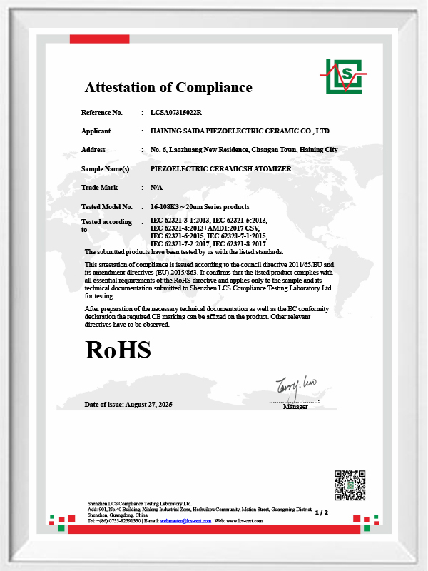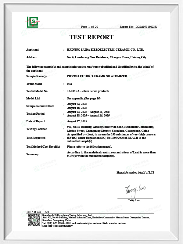 Keramik piezoelektrik bebas timbal dikenal sebagai "mutiara" industri piezoelektrik, masa depan secara bertahap akan menggantikan keramik piezoelektrik berbasis timbal di semua aspek, yang sudah memiliki kinerja piezoelektrik yang sama, dan lembaran piezoelektrik berbasis timbal. Ini benar-benar tidak beracun, tidak berbahaya, aman, dan ramah lingkungan, tidak mengandung timbal, antimon, dan logam berat lainnya serta elemen yang dibatasi Rohs lainnya, suhu Curie tinggi Tc-328 ° C, kehilangan listrik yang sangat rendah TangentLoss Oleh karena itu, chip atomisasi medis piezoelektrik bebas timbal memiliki nilai komersial dan nilai universal yang besar, benar-benar tidak beracun dan ramah lingkungan, keramik piezoelektrik bebas timbal selain tidak menimbulkan polusi, kinerja piezoelektrik yang sepadan dengan keramik berbasis timbal, akan menjadi keramik piezoelektrik ramah lingkungan yang populer. Setelah bertahun-tahun melakukan penelitian dan pengembangan, setelah pengujian dan eksperimen terus-menerus, perusahaan telah berhasil membuat chip atomisasi medis bebas timbal untuk mencapai jumlah atomisasi yang sama dengan chip atomisasi berbasis timbal, dan persyaratan diameter partikel yang sama. Chip nebulizer Mesh medis bebas timah, pasti akan bersinar dan akan mendapatkan berbagai skenario penggunaan.